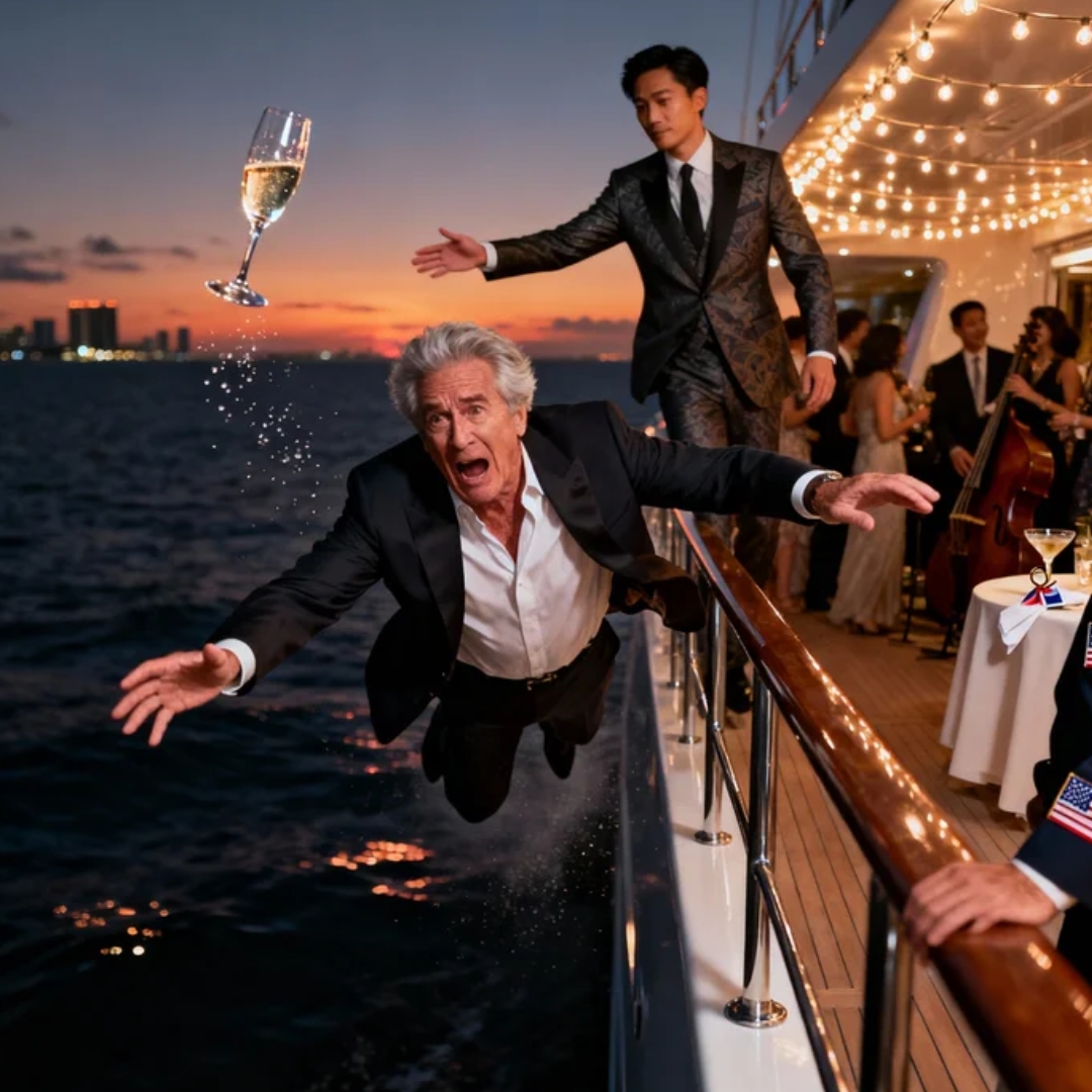 The champagne flute caught the Miami sunset like it was holding fire—golden bubbles, pink sky, the kind of sparkle people pay millions to pretend is their life—right up until my son-in-law’s hand “helped” my shoulder… and the world tilted.