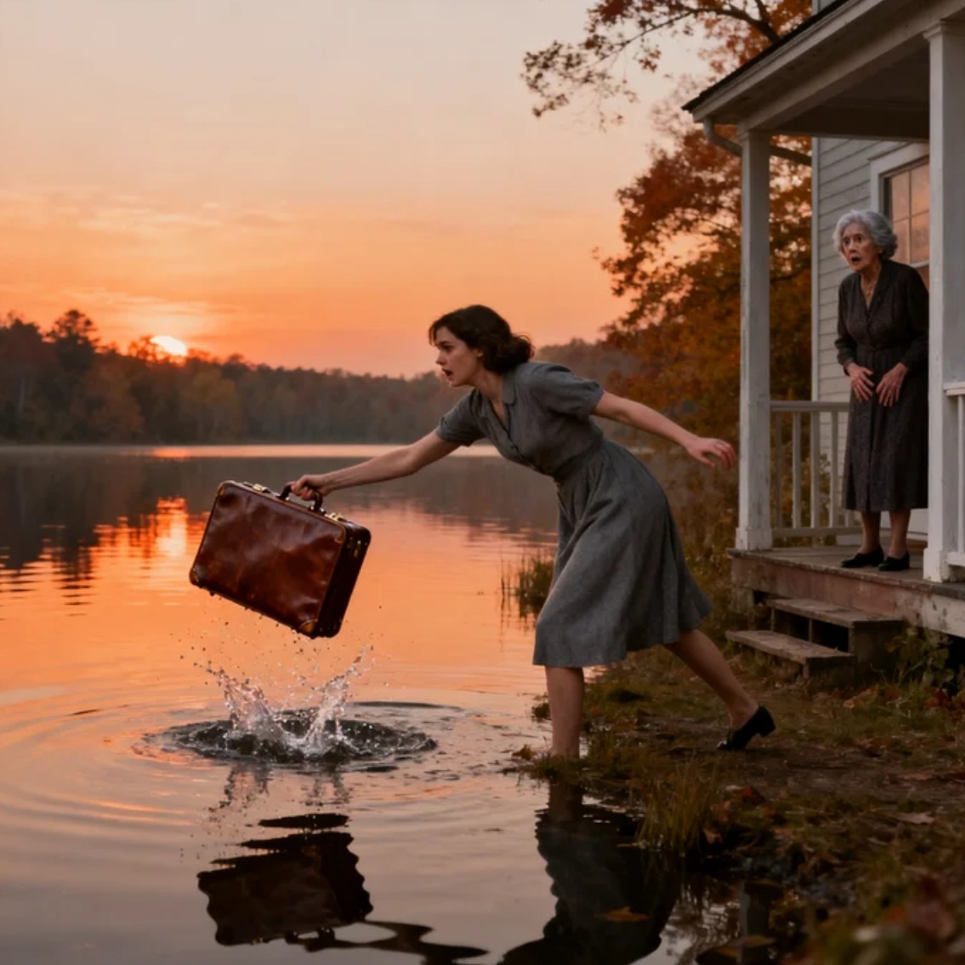 The suitcase hit the water like a dropped heartbeat—one dull thud, one violent splash—and for a single impossible second it floated there, bobbing on Meridian Lake as if it might change its mind and crawl back to shore.