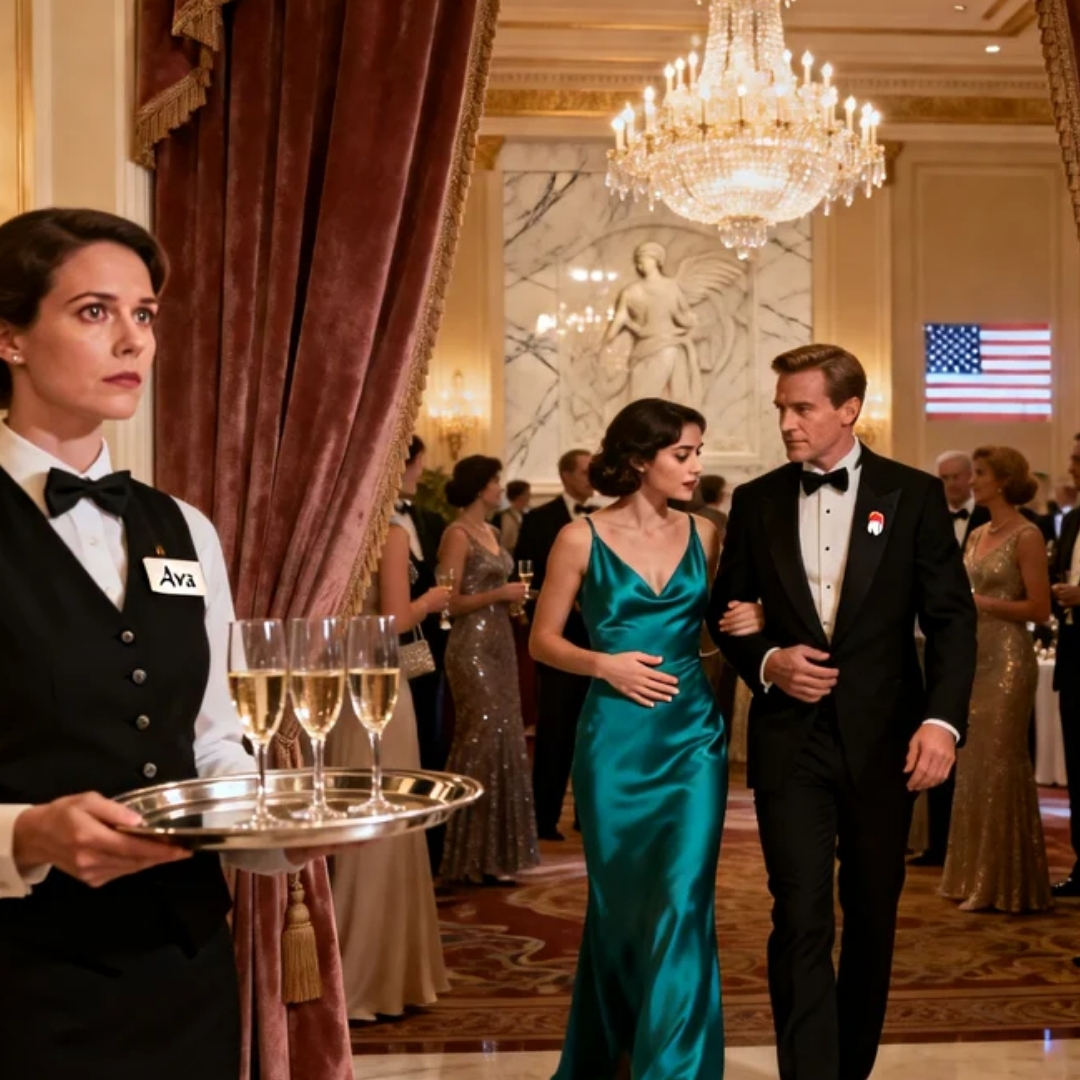 The ballroom doors opened in a soft sweep, and the sound of voices rose like a tide. Ava moved along the edge of the room with practiced control, shoulders relaxed, eyes scanning, tray held steady.