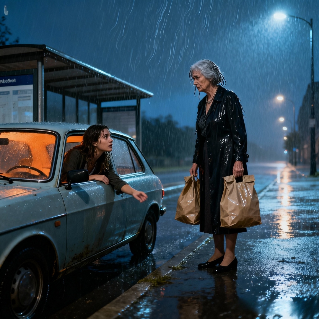 “Well,” she said finally, voice crisp and surprisingly elegant, like she’d stepped out of an old movie, not a rain–beaten bus stop. “If you’re quite sure it’s no trouble…”