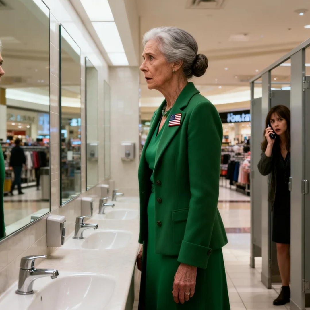 I stayed perfectly still, staring at my reflection in the mirror above the sink of the Oakridge Mall restroom just outside Milwaukee, Wisconsin. The woman looking back at me was seventy years old, silver hair pinned neatly in place, pearls at her neck, posture still straight from decades of boardroom battles.
