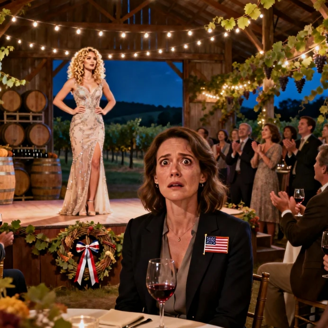Fairy lights hung from the rafters of River Edge Vineyard’s event barn, spilling warm gold across the polished wood floor. The air smelled like caramelized apples, oak barrels, and expensive perfume. Tables were dressed in crisp linen, and every guest held a glass of our newest release like it was liquid happiness.