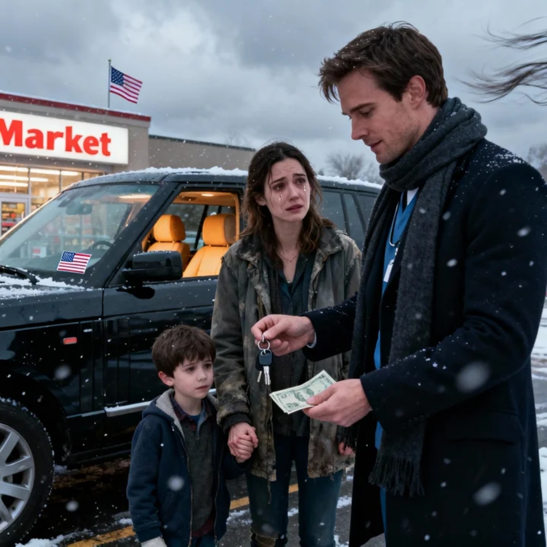 A young mother stood near the entrance of the grocery store, holding the hand of a boy who looked about six. Her cheeks were red from the cold. Her lips were pale. Her eyes—God, her eyes—were wet with tears that froze at the corners, making her look like she’d been crying since yesterday and just couldn’t stop.