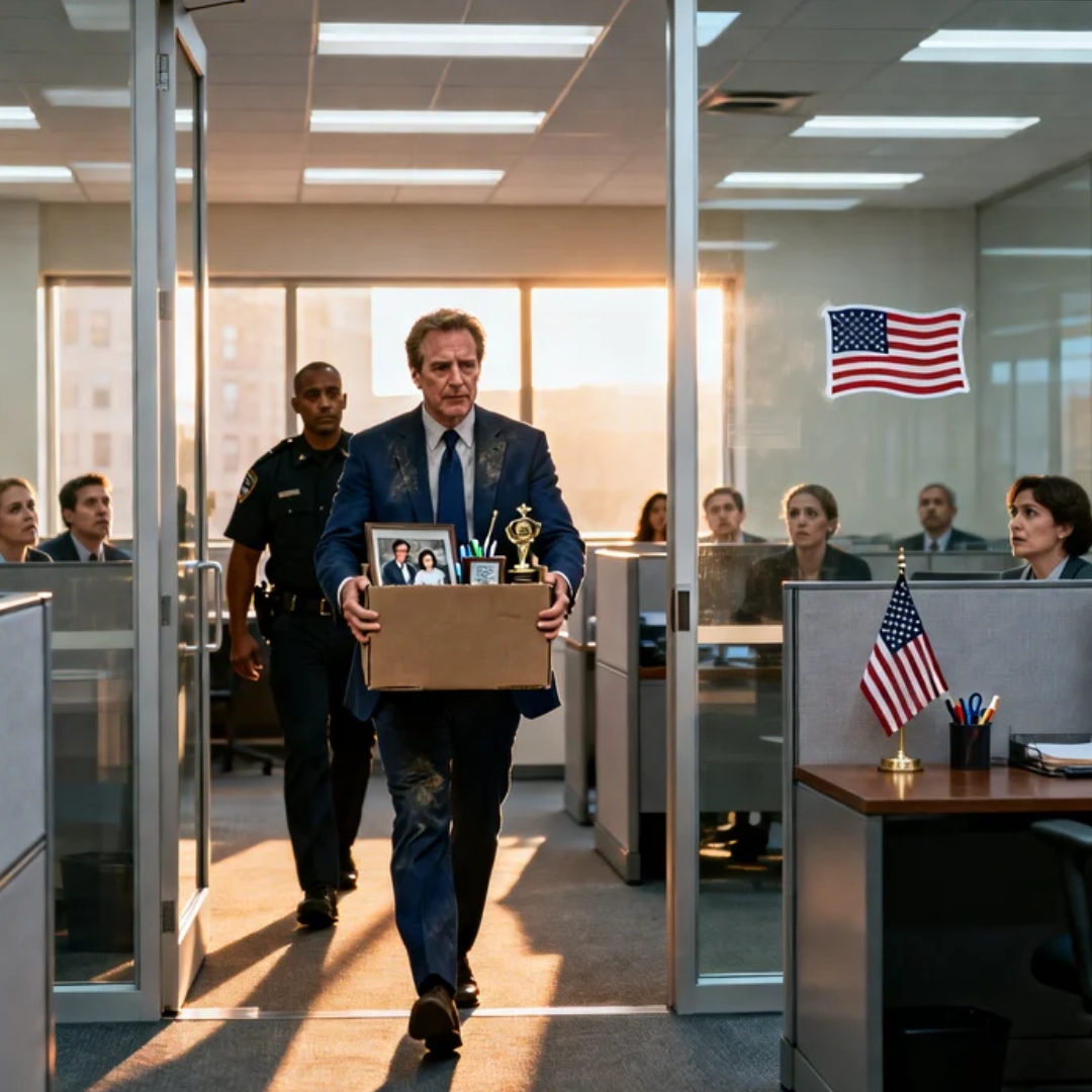 “This is why your access is being terminated,” she said. “Security will escort you to your desk. You can collect your personal items. Your building access ends immediately.”