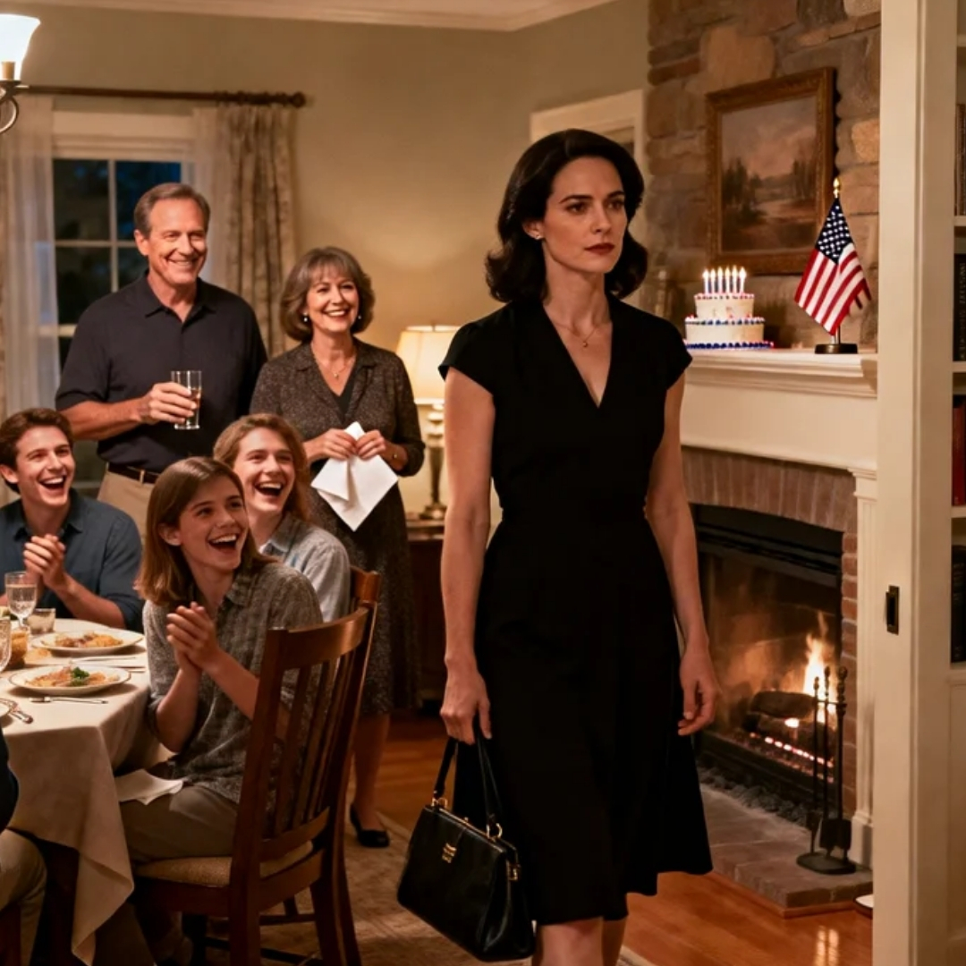 Two days later, photos from the dinner went up online. Everyone gathered in front of the fireplace, smiling like a brochure for family values.