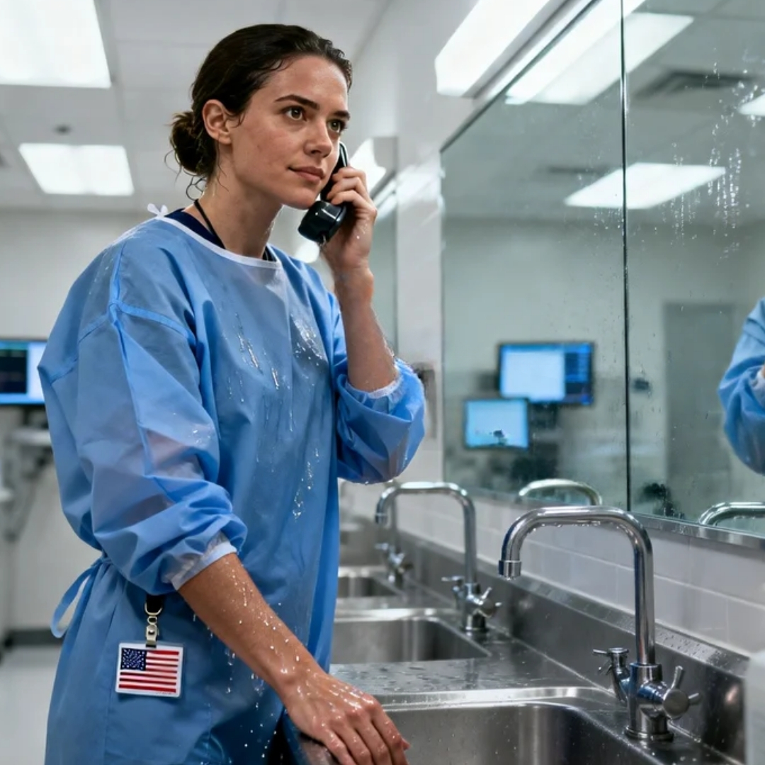 I was scrubbing out of a long case when a nurse held up my phone with a look that made my stomach tighten.
