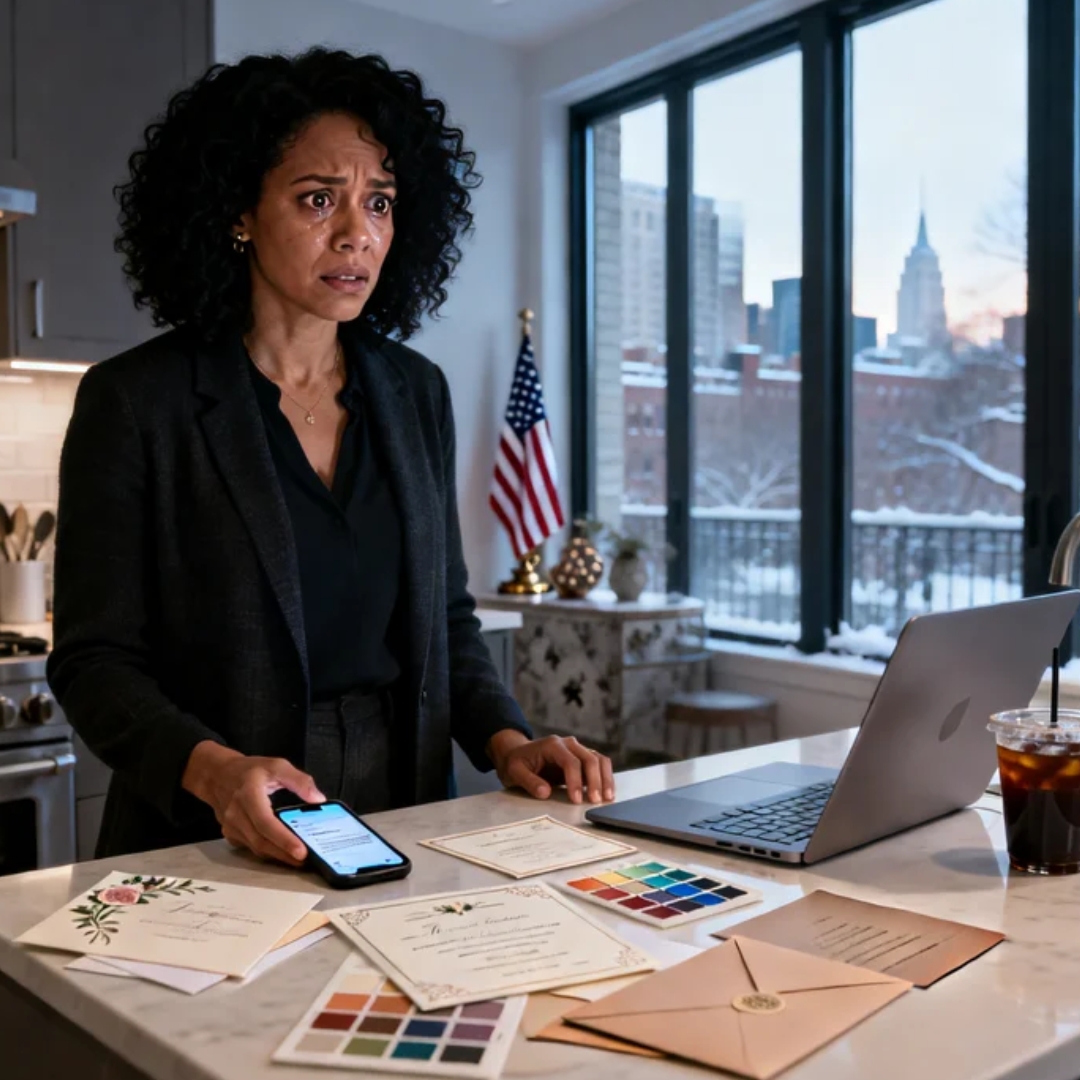 She found me still sitting at the kitchen island, frozen in place, surrounded by wedding invitation samples that had arrived that morning. Cream paper. Gold foil. The phrase Join us in celebrating our love shining like a cruel joke.