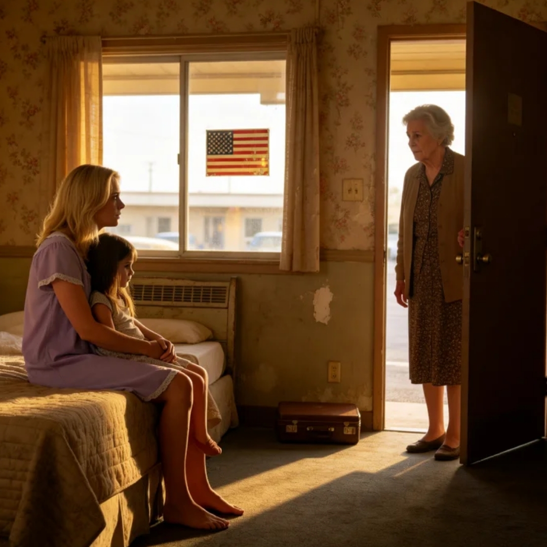 One letter buzzed, went dark, then came back on again, bathing the parking lot in a sickly blue glow. My daughter was asleep beside me on the narrow bed, one sneaker still on, her arm curled tight around a stuffed rabbit that had lost one eye somewhere between the divorce papers and this place.