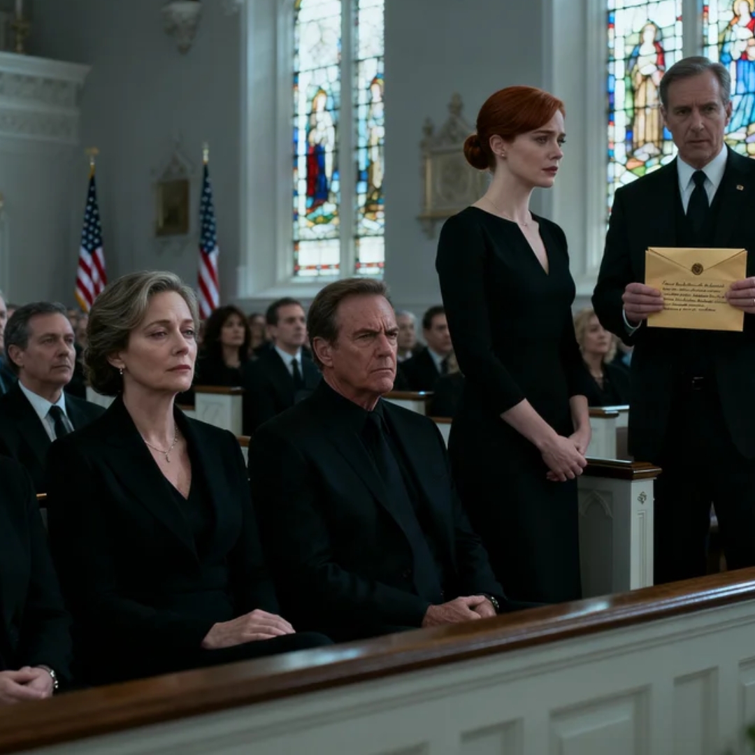 My mother sat in the front row in black silk and inherited composure, her chin lifted at the exact angle that looked dignified from a distance and merciless up close. Her hands were folded in her lap like she was modeling grief for a campaign photographer. My father stood beside her in a dark suit that fit him too well, his face arranged into solemn authority, the kind that had carried him through donor dinners, board meetings, and family crises he never intended to solve himself. And at the front of the chapel, beneath stained-glass light and the thin hum of air-conditioning, the family lawyer held a sealed envelope like it might explode.