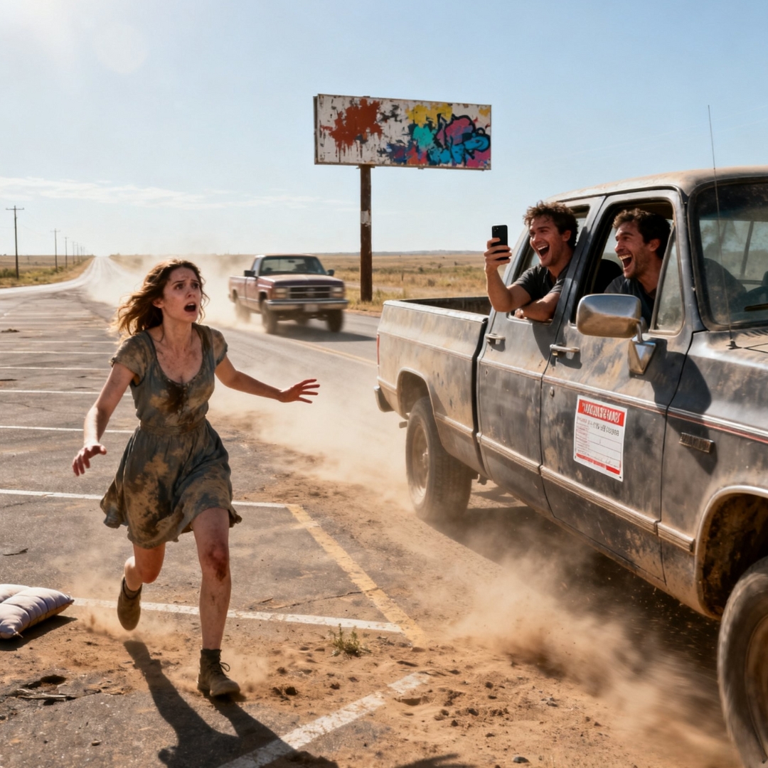 The pickup’s taillights shrank toward the horizon, and Kyle’s brothers leaned out the windows like they were filming a stunt. Brad’s phone was up, steady, pointed right at me. Chase’s laughter was loud enough that I could hear it over the engine.
