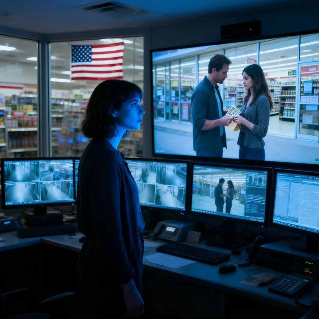 The office was small, windowless, practical. Three monitors glowed on a desk. A younger store manager stood beside them in a navy polo with a company badge clipped perfectly straight. He had the polished composure of someone trained to discuss shoplifting, inventory shrinkage, and customer escalation with the exact same calm voice. There was a neat stack of receipts on the desk. A pen. A clipboard. A bottle of water no one had touched.