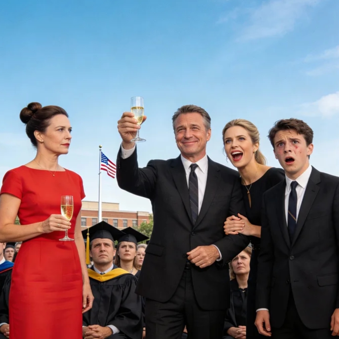 Thirty, maybe younger. Hair professionally glossy. Makeup flawless. A woman who looked like she belonged in a corporate lifestyle magazine or a “success story” ad — not a graduation celebration.