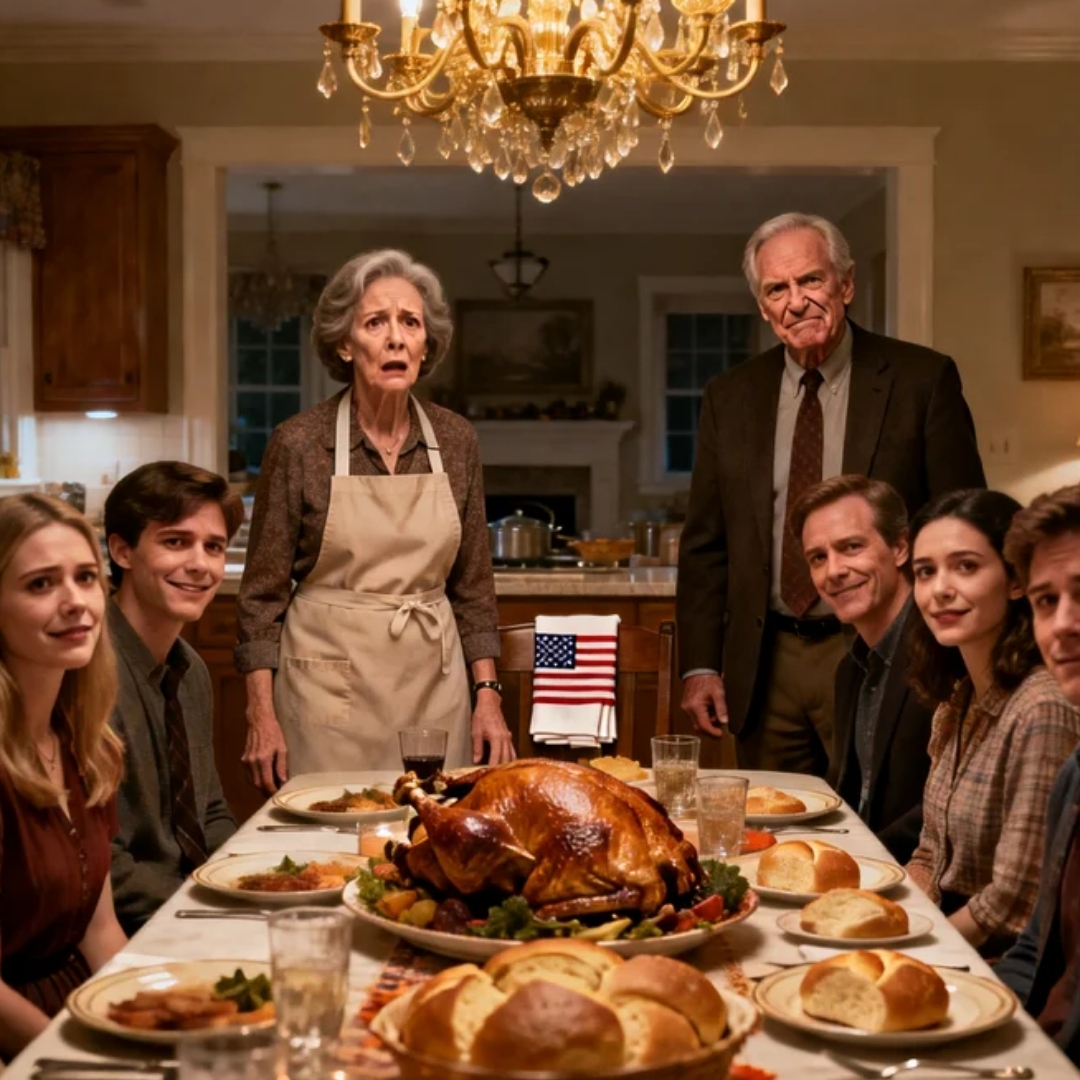 Two days of work had gone into the turkey she’d basted since dawn. The rolls were still steaming in their basket. Her apron carried cinnamon and nutmeg. Her hands smelled like butter and responsibility.