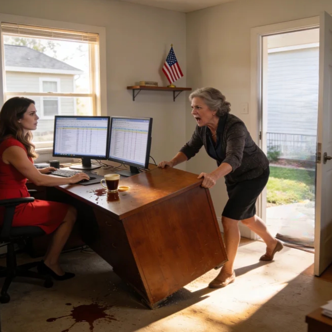 And my mother—Deborah Mitchell—stood there with both hands on the oak surface like she had just shoved a broken piece of furniture into a corner.