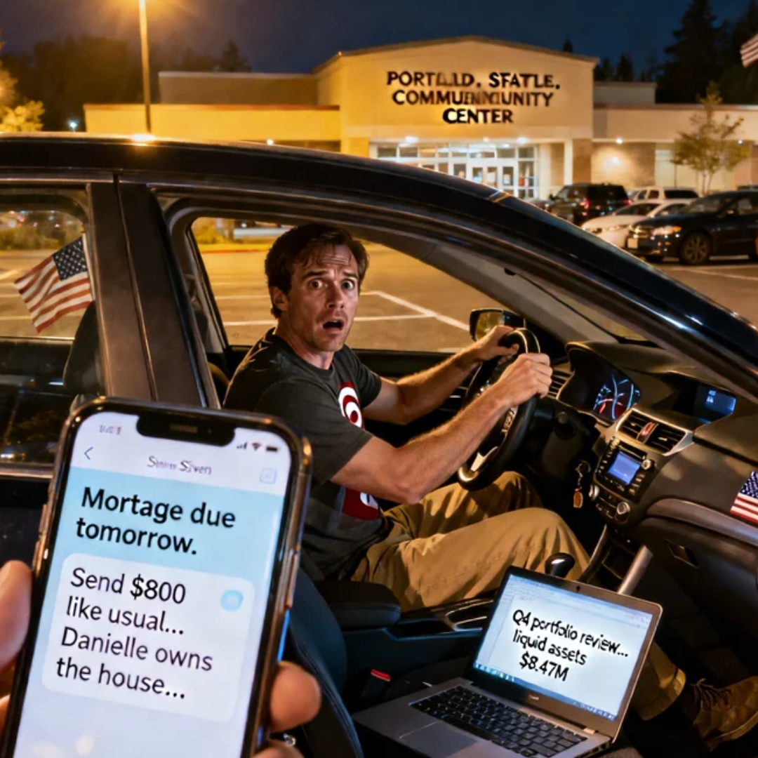 I was standing in my car in a fluorescent-lit parking lot, the kind of lot that smells like wet asphalt and burnt coffee, outside a community center on the edge of Portland where the streetlights buzz and the wind cuts through your jacket like it has a personal vendetta. My hands were still wrapped around the steering wheel of my old Honda Accord, knuckles pale, like the car was the only stable thing in my life.