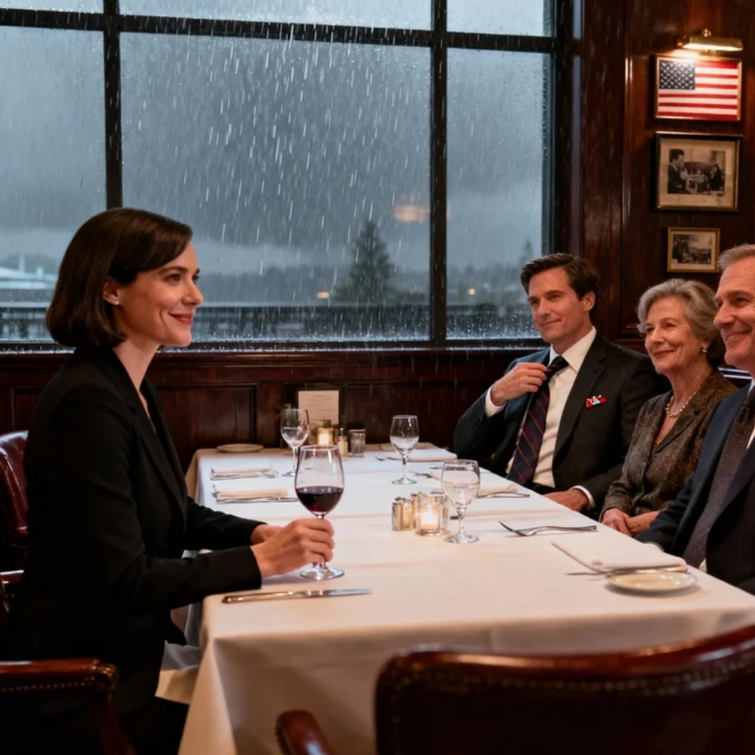 That Sunday, the city was drowning under a slate-gray sky. The streets around Pioneer Square shone with wet reflections—headlights smeared into neon streaks, umbrellas bobbing like dark jellyfish, tourists huddled under awnings as if the weather could be negotiated. But inside The Metropolitan Grill, the air was warm and heavy, thick with the perfume of aged steak, cedar, and old money pretending it was earned.