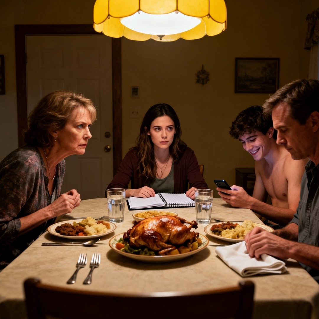 My mother didn’t flinch. She set her fork down, the sound a clean metallic click.