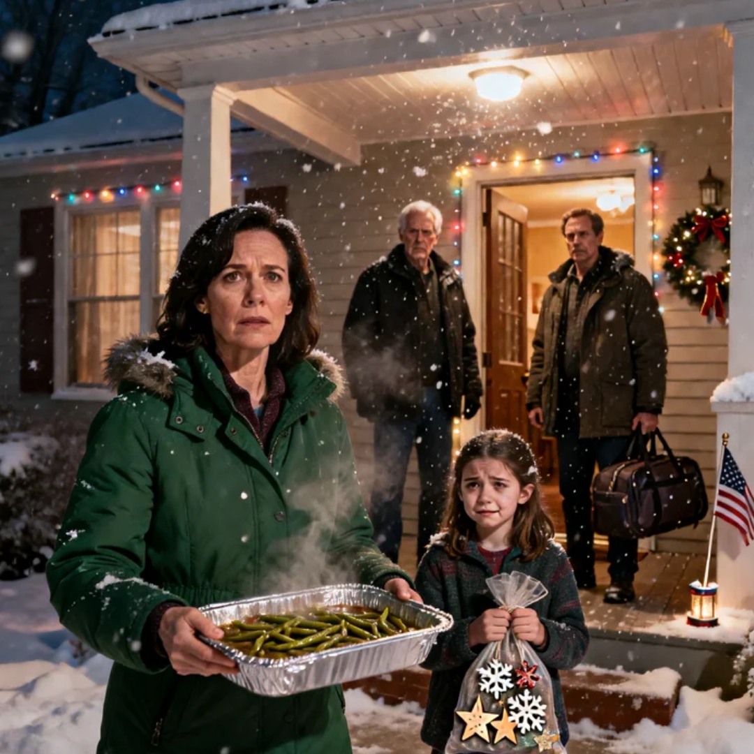 That night, I stood on my parents’ doorstep holding a foil-covered tray of green bean casserole, still warm from my oven. The smell of cream of mushroom soup, onion crunch topping, and butter rose into the icy air like comfort. I’d made it from scratch because that’s what I did when I wanted approval. When I wanted to keep peace. When I wanted the family to feel normal.