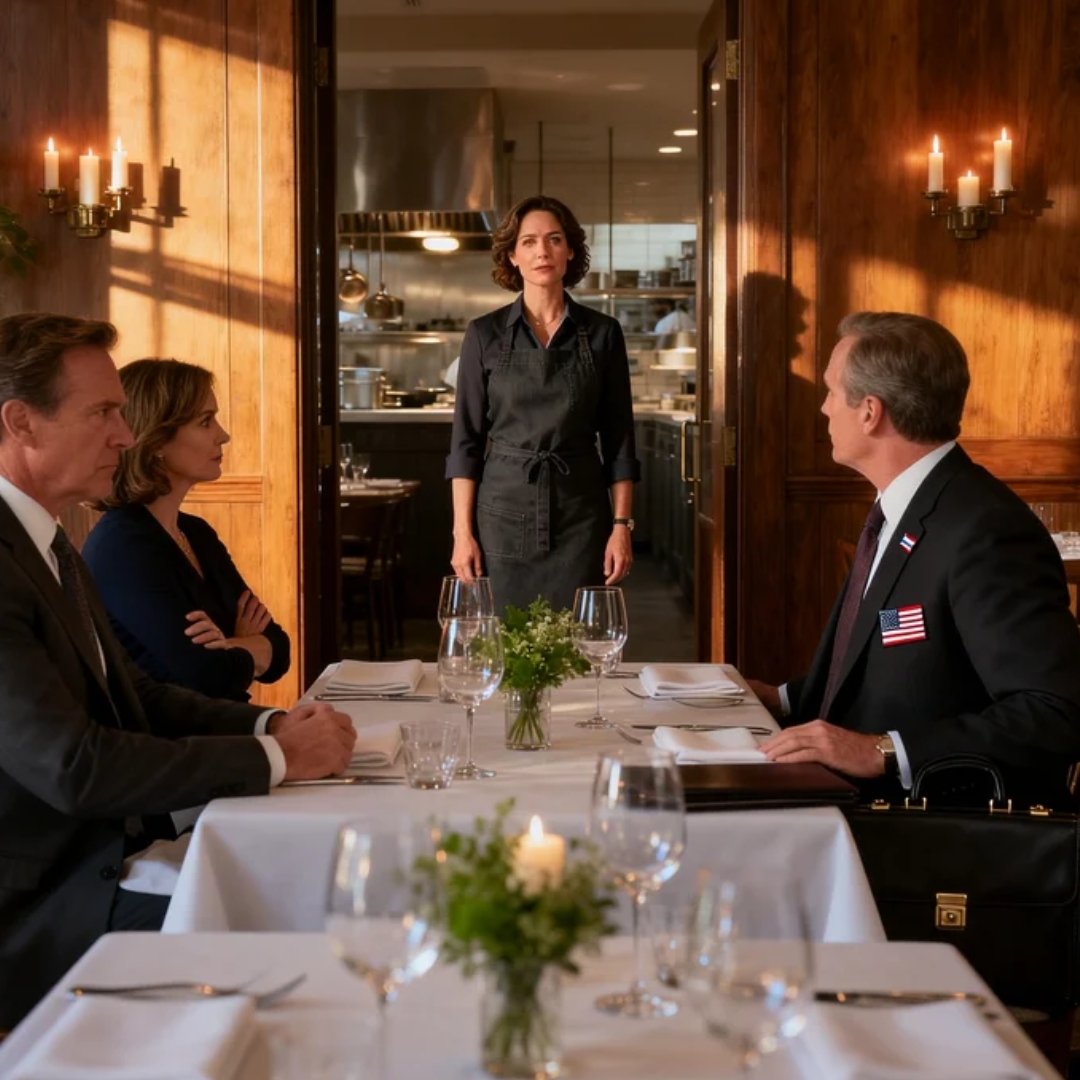 Her eyes flicked around the room, taking in the polished walnut, the candlelight not yet lit, the linen napkins folded sharply on every table, the half visible movement of my staff in the open kitchen, the life she once said would ruin me.