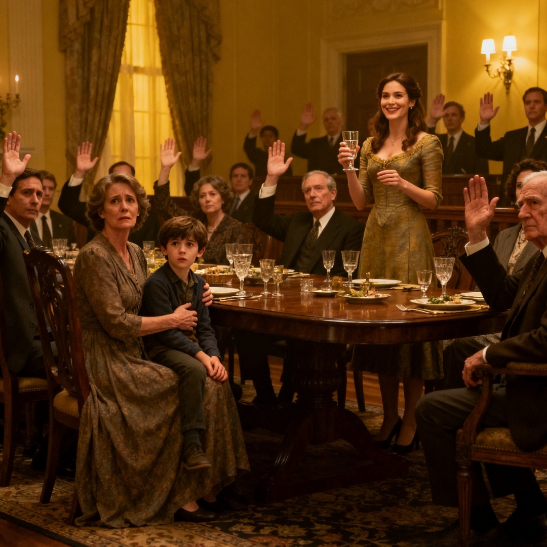 Carol’s hand went up first, as if she’d been rehearsing the motion for weeks. Robert followed without looking at me. A cousin I barely knew lifted her hand with a shrug, like this was simply the easiest choice. A spouse who had once complimented my dress raised his hand while staring at his plate. Even Levi’s mom—who’d hugged Luca two hours earlier—raised her hand with a tight little smile like she was apologizing without actually apologizing.