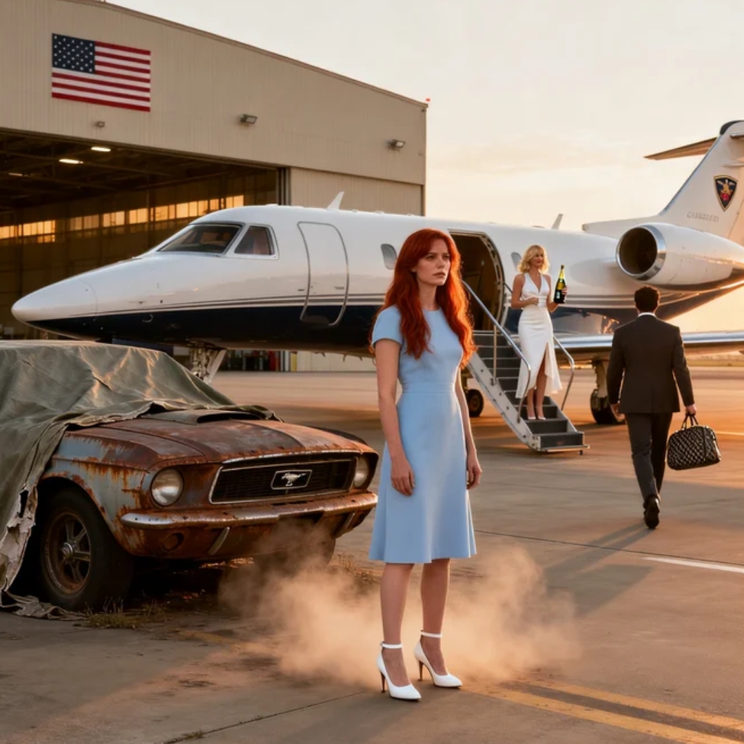 Hot air and dust blasted across the hangar floor, hitting me in the face, whipping my hair back, rattling the tarp over the car that was supposed to be my legacy. I stood there in work boots and coveralls while the aircraft lights glowed blue-white in the dimness and the people I had paid for, supported, and tolerated left me behind like I was part of the equipment.