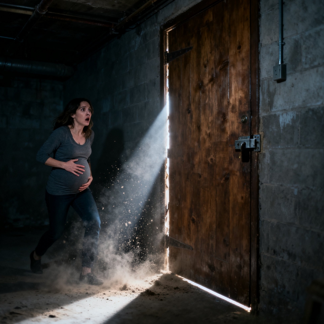 The basement was colder than I expected. Not freezing, but the kind of chill that creeps into your skin when you’re already stressed and tired. I pressed my forehead to the door, trying to slow my breathing.