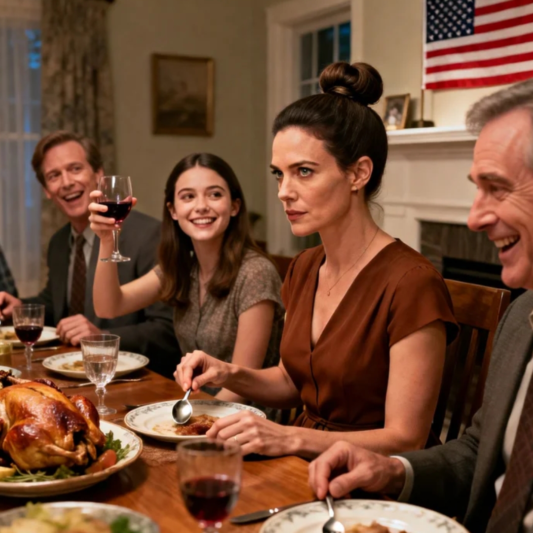 The table looked normal: chicken steaming in the center, a basket of rolls, glasses catching the warm light. But the warmth felt wrong, stretched thin like it might tear.