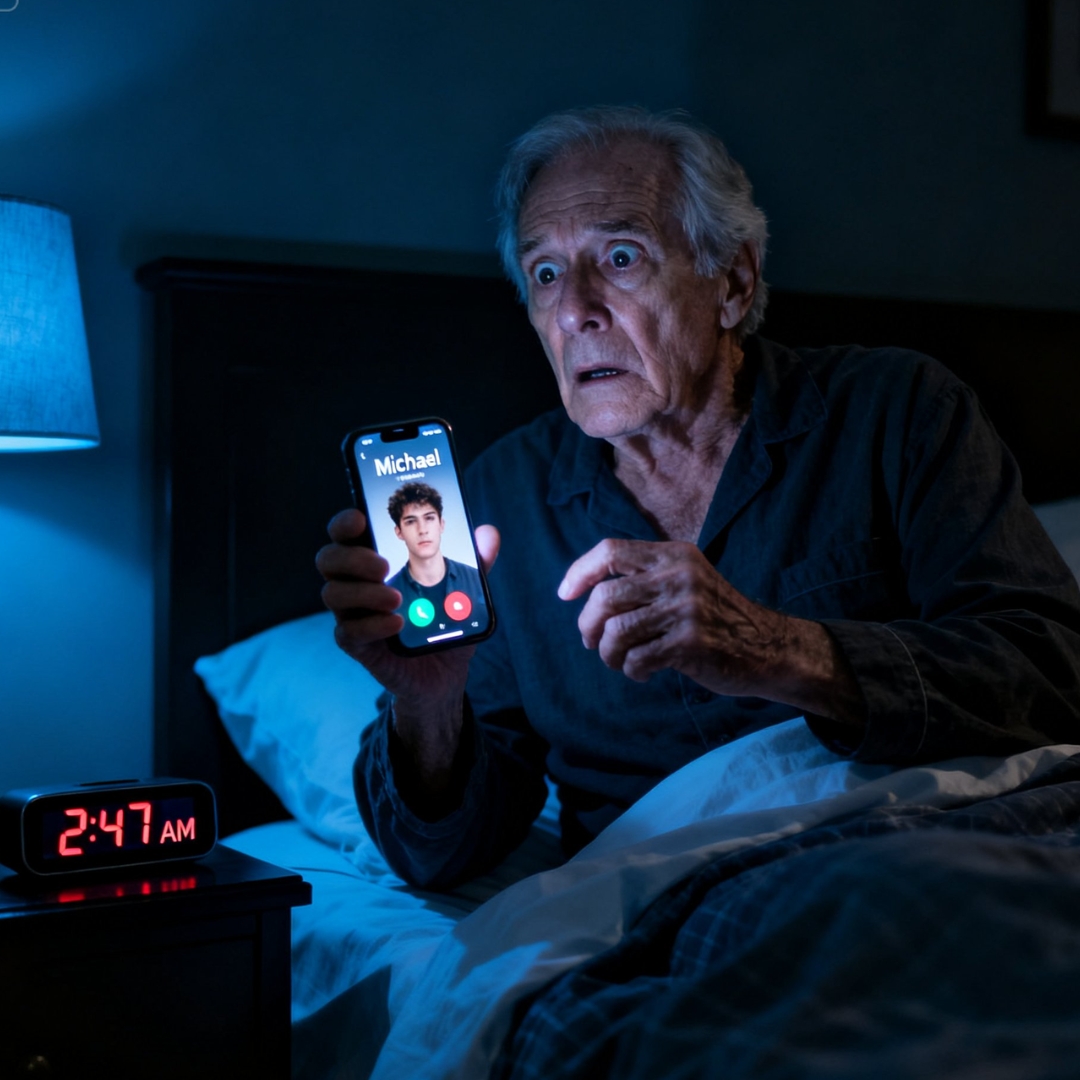 At 2:47 a.m., the blue glow of my phone turned my bedroom into an aquarium—and my son’s name surfaced from twenty years underwater.
