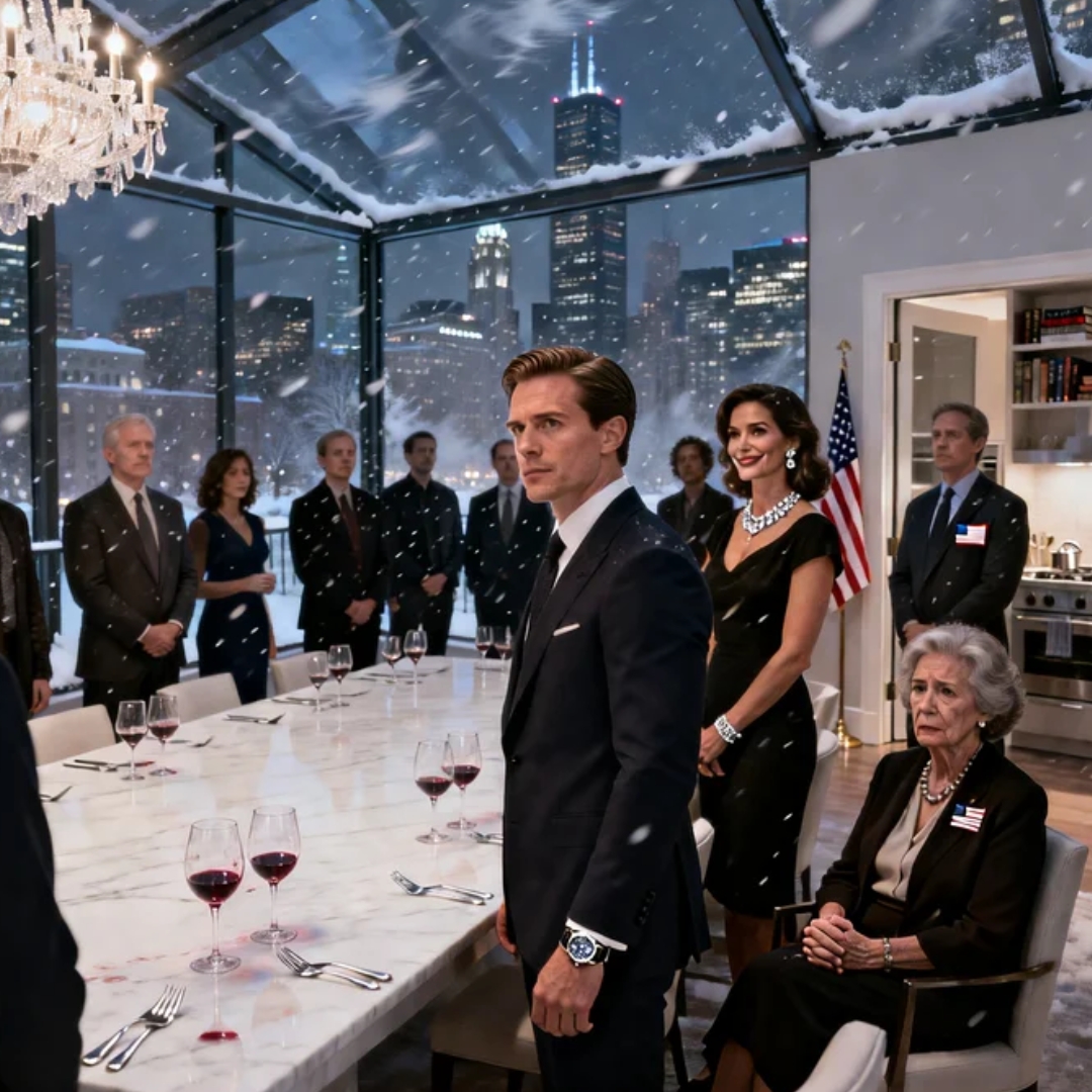 It dropped into that glass-walled dining room like a slab of ice—dense, breath-stealing, and sharper than the December wind screaming off Lake Michigan and slapping the windows forty stories above Chicago.