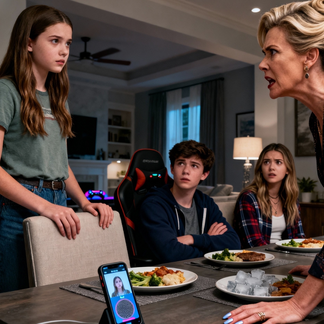 Sandra sat at the head of the table now, where my dad used to sit. She liked that chair—the one facing the window, the one you’d see first from the open archway. She dabbed her lips with a linen napkin like she was in some glossy magazine spread about “modern blended families” instead of our very real, very lopsided household in midwestern America.