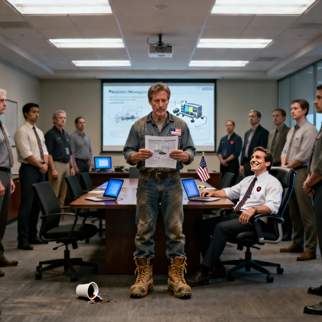 I kept my face neutral because I’d learned that trick the hard way—two decades of manufacturing teaches you composure or it eats you alive. Machines don’t care about your feelings. Neither do people who worship buzzwords.