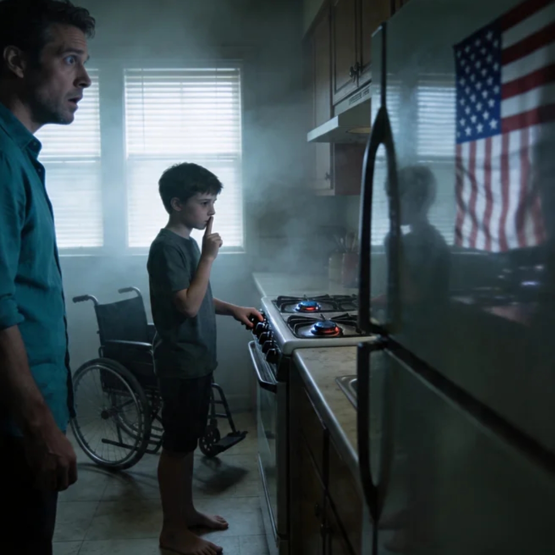 Bare feet on the tile, steady and quiet, like he had done it a thousand times before. His hand reached out calmly, fingers turning the stove knob with careful precision.