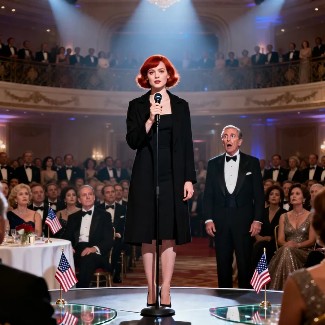 The chandelier above us glittered like a thousand frozen tears—each crystal shaking slightly from the bass of the orchestra and the quiet tremor of rich people laughing too hard.