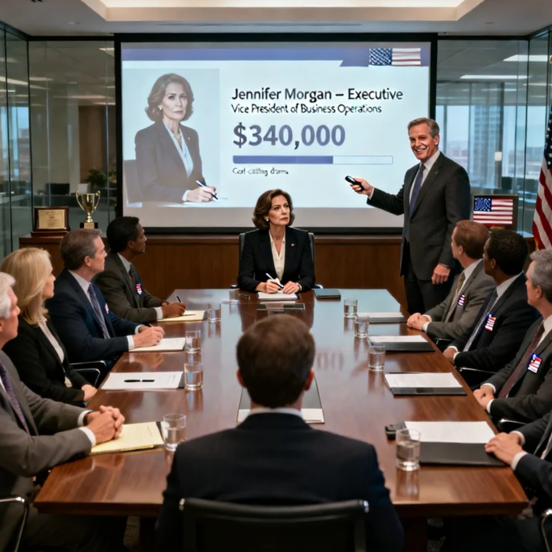 “Jennifer Morgan,” Gregory said, voice smooth as polished granite. “Vice President of Sales Operations. Total annual earnings: three hundred and forty thousand.”