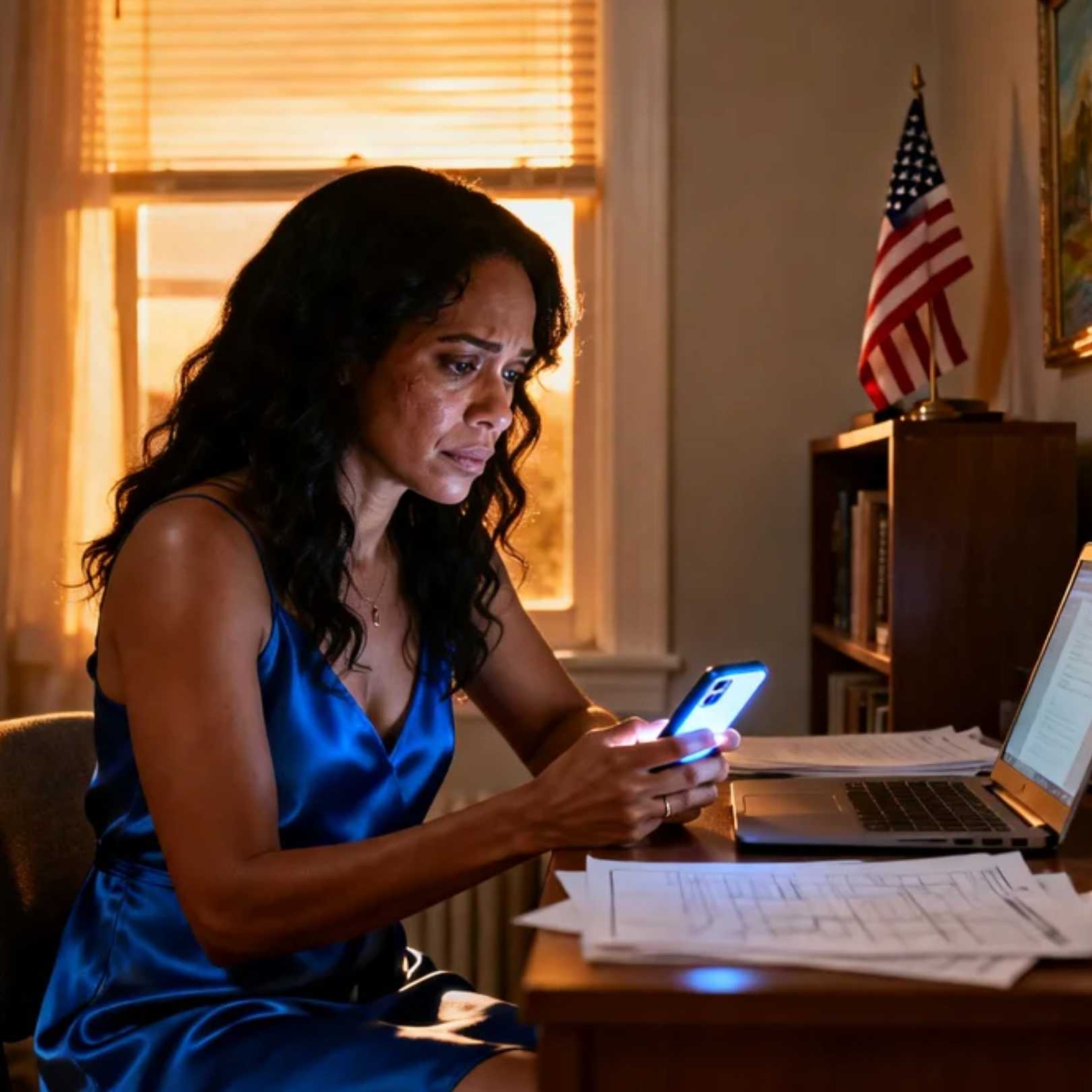 The screen glowed in the dim apartment light, bright enough to paint my knuckles blue as I held it too tight. Outside my window, the California night kept moving—sirens far off, a motorcycle ripping down a boulevard, palm fronds scratching the air like restless fingers. Somewhere down the street a neighbor’s TV was loud enough to leak laughter into the hallway.