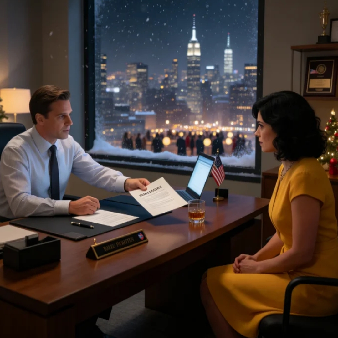 Snow fell outside our townhouse window like the city was trying to soften what was about to happen—white flakes drifting over the glow of Manhattan, over yellow cabs and holiday lights, over the kind of Christmas Eve people post on Instagram when they want the world to believe their lives are perfect.
