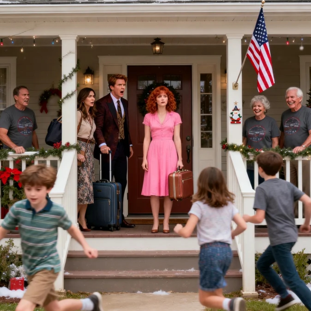 His wife Melissa stood beside him in expensive travel clothes, gripping the handle of a rose-gold carry-on like she was hanging onto the last stable thing in the world. Their three children swarmed my porch in a blur of winter jackets, sticky hands, and loud entitlement. Behind them, framed almost theatrically in the weak winter sunlight, stood our parents.