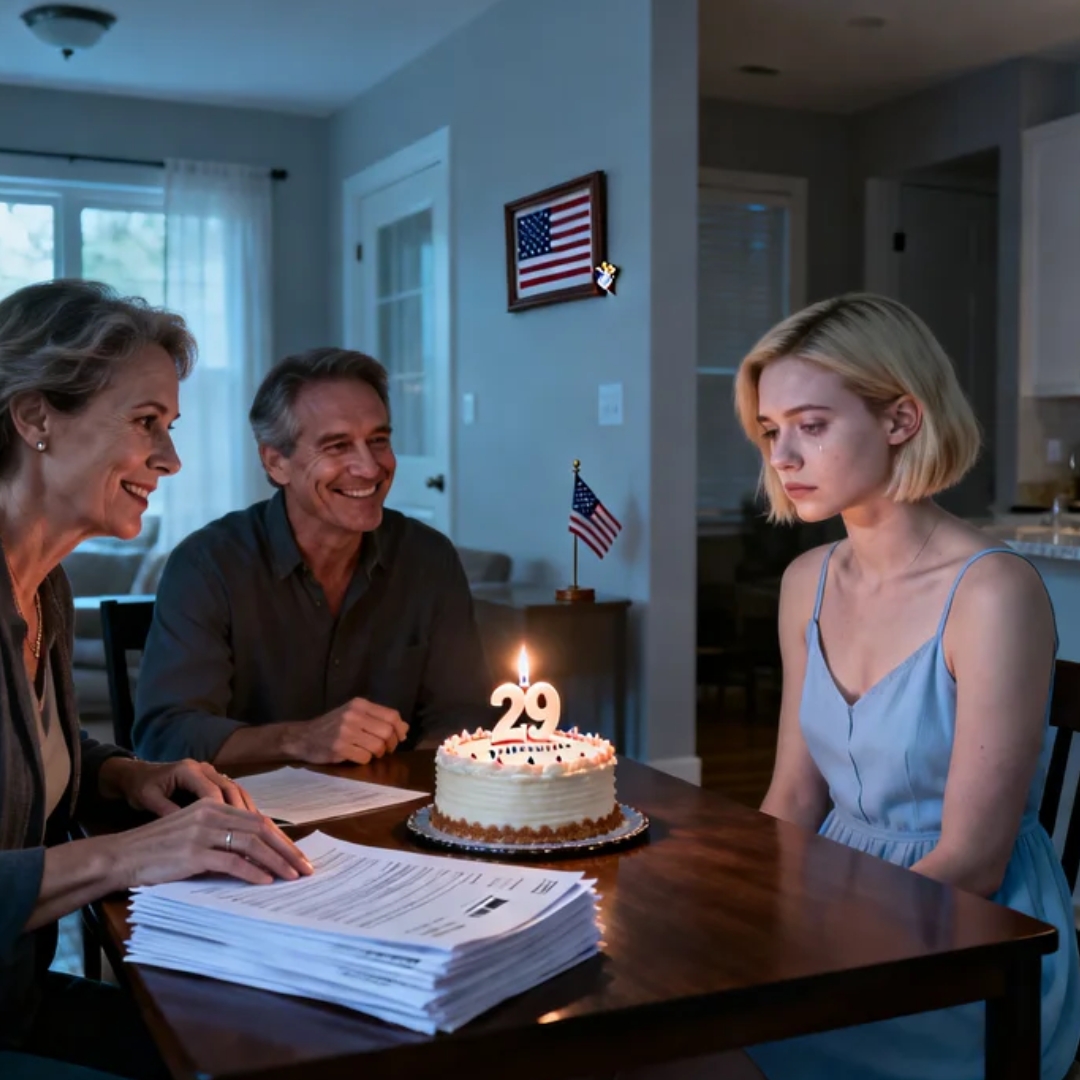 My father entered first, already smiling, the satisfied smile he wore when he believed an outcome was inevitable. He didn’t look at the cake. He didn’t look at me. He carried a manila folder, thick, creased at the edges, and dropped it onto my kitchen table with a flat, practiced motion.