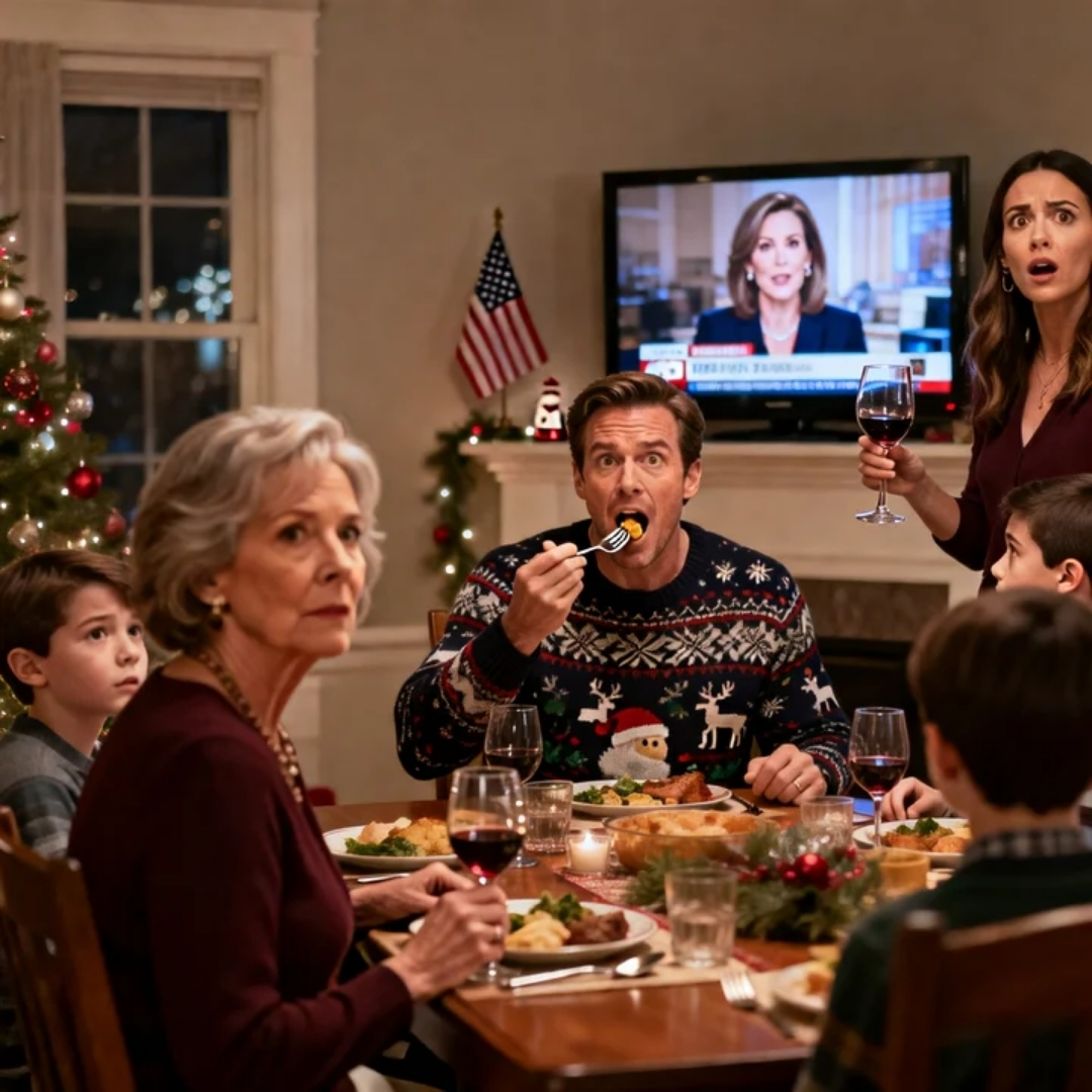 Kyle’s fork froze midair, turkey suspended like a museum exhibit. His jaw worked once, twice, as if the concept of me on television had jammed his brain.
