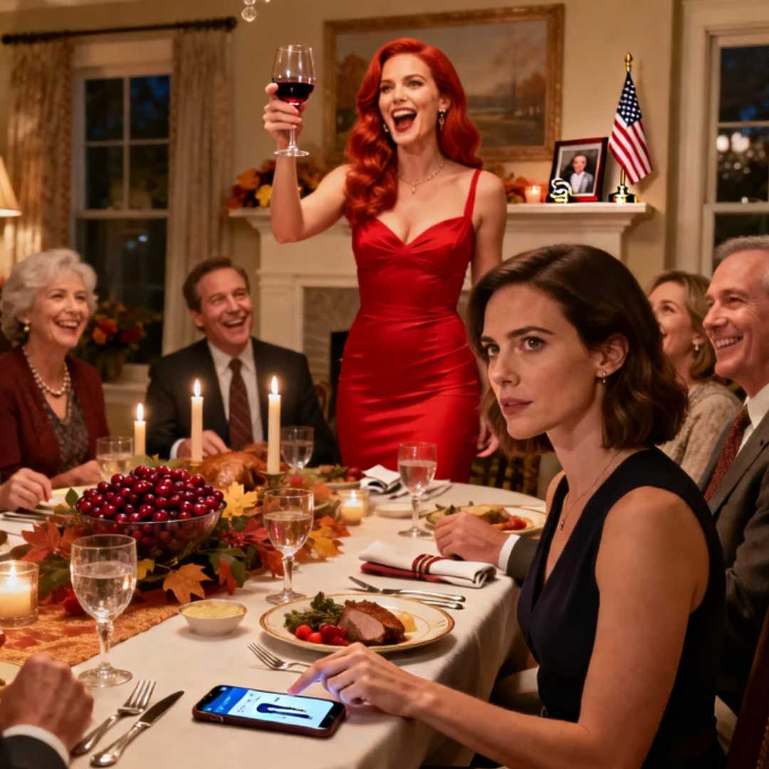 Chloe’s smile froze mid-toast, glass still lifted, eyes still shining with that practiced, influencer-level warmth—until the screen lit again. And again. And again. A cruel little strobe of consequences flickering across the Thanksgiving table like a warning flare.