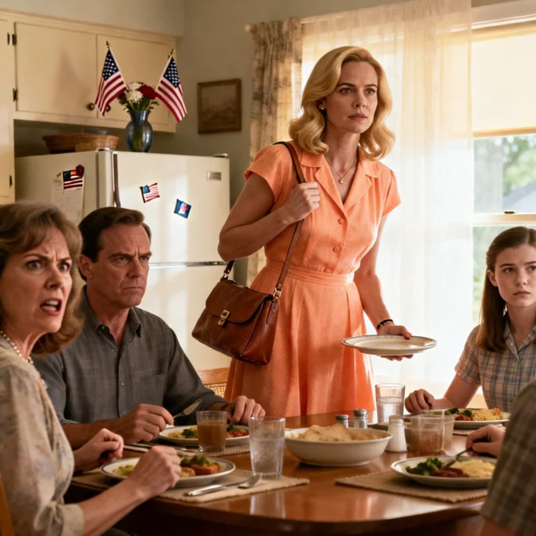 That afternoon, the table was set like a magazine spread—linen napkins folded into stiff triangles, roast chicken steaming on a platter, green beans cooked just soft enough to look obedient. Outside, somewhere in the neighborhood, a leaf blower screamed. The kind of ordinary American sound that fills up the spaces where people don’t say what they mean.