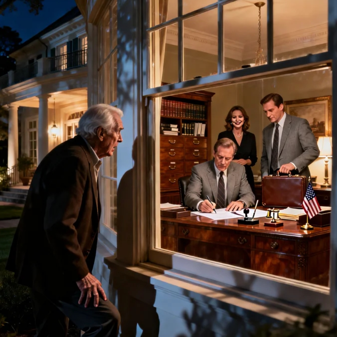 For a heartbeat, my mind refused to accept what my eyes were feeding it. The porch light threw a warm halo over the study, the same study where I’d built every deal, signed every contract, buried every panic attack behind a calm smile. That room had been my sanctuary for thirty-eight years. My fortress. My proof.
