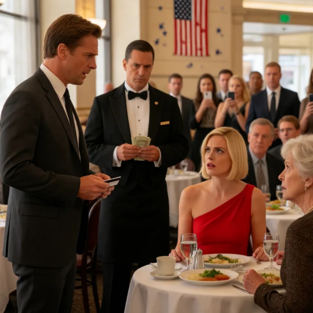 And in that silence, I could hear the restaurant around him: the soft clink of cutlery, the low murmur of moneyed conversation, the subtle cruelty of an expensive place where embarrassment is served hotter than soup.