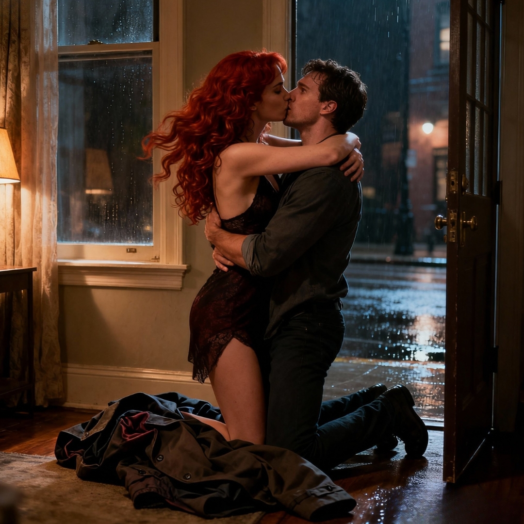Logan Winters stood by the tenth-floor window of a downtown Philadelphia office building, watching threads of rain distort the city into wavering shadows. Through that watery blur, a woman stepped from a rideshare car, the wind catching her red curls like a flare cutting through the gray. For one impossible second, she looked straight up at the window—as if she knew he was watching.