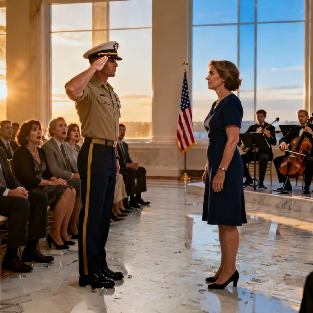 Then he rendered a salute so crisp it looked like it belonged on a parade ground, not beside a champagne tower.