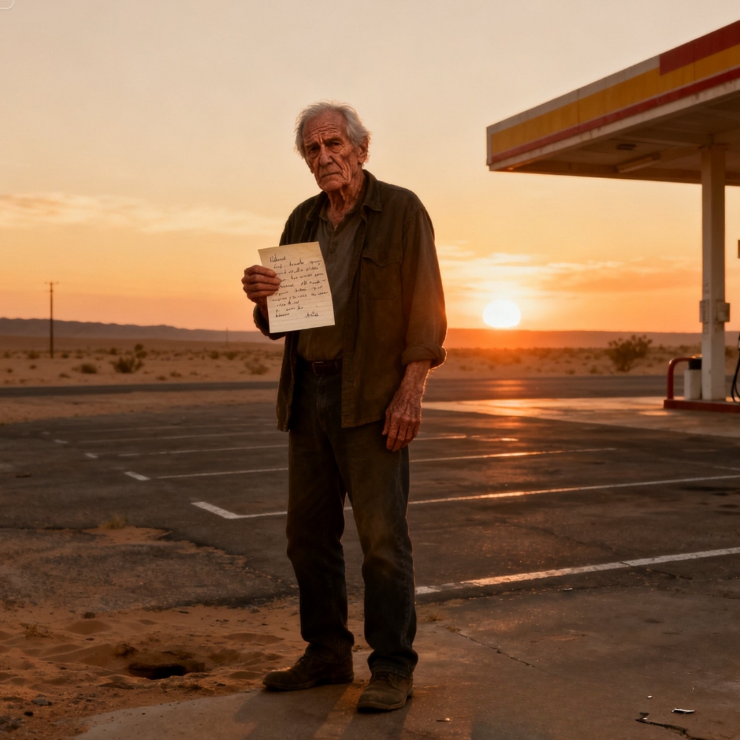 I was seventy-three years old, standing at a gas station off a lonely stretch of highway somewhere between Nevada and Arizona—one of those places that exists only because Americans need fuel to get from one real town to another. Two pumps. A flickering sign. No bus stop. No sidewalk. No shade. Just heat, silence, and the sound of engines that didn’t belong to me.