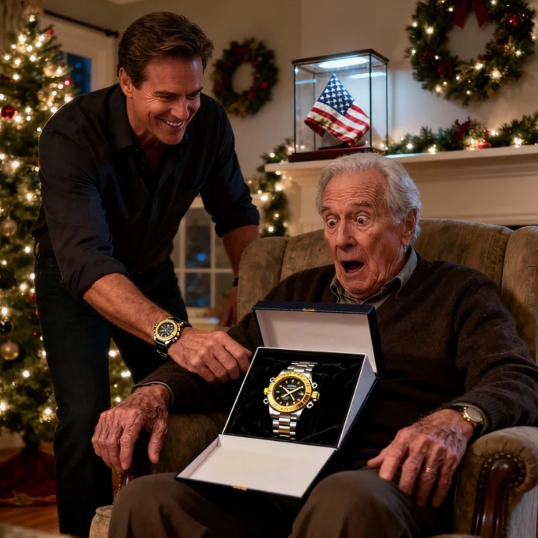 A luxury watch—gold and steel, heavy-looking even in the box. The kind of gift men buy when they want the room to notice.