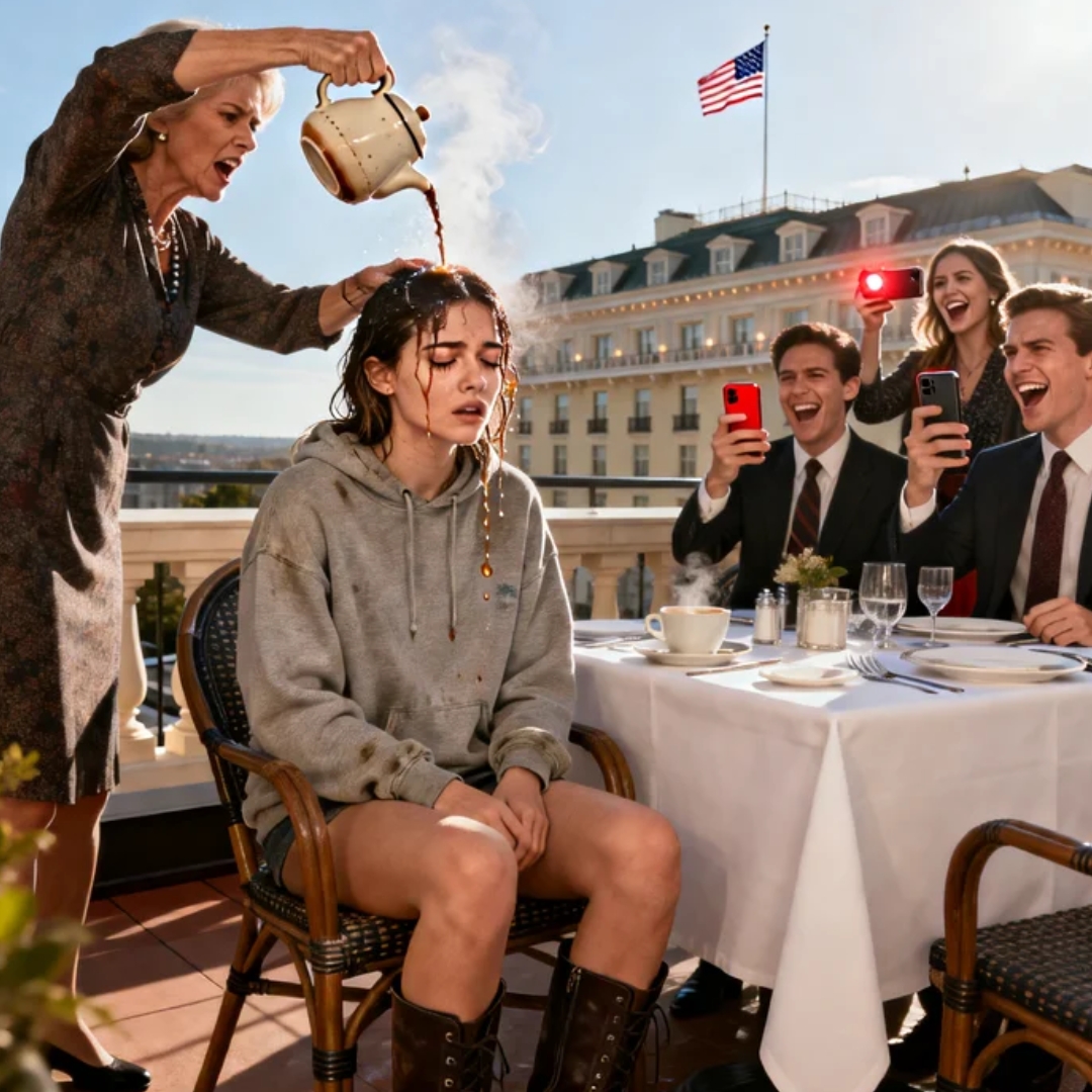 My mother stood on the other side of the table, chest heaving with anger, gripping the ceramic pot with fingers that still trembled from the act. She wore oversized sunglasses and a designer coat she probably couldn’t afford. She always looked like she was dressed for someone else’s approval, like the entire world was a stage and she couldn’t allow herself to ever appear ordinary.