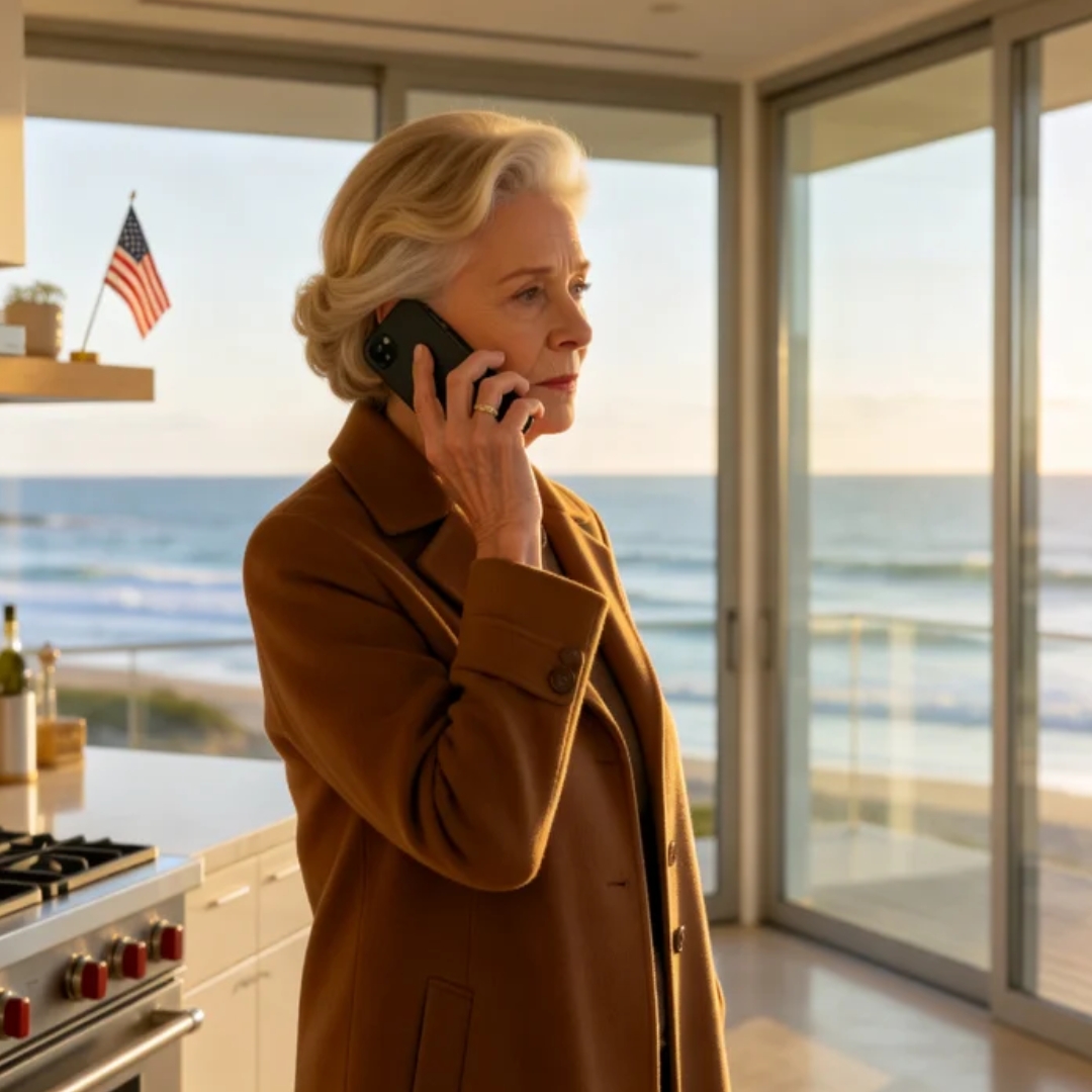 I stood frozen in my kitchen, my hand tightening around the phone as I stared out through the glass wall at the Pacific.