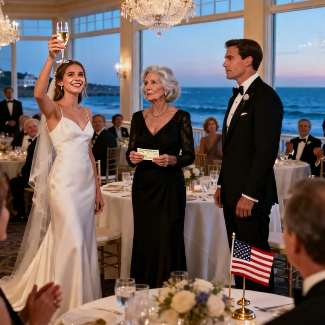 The crystal chandelier above the ballroom trembled slightly as four hundred champagne glasses lifted into the air—and in the next breath, a single sentence shattered the entire room.